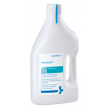 Το απολυμαντικό εργαλείων Rotasept® είναι ειδικά σχεδιασμένο για την απολύμανση και τον καθαρισμό φρεζών και περιστοφικών εργαλείων. Έτοιμο για χρήση χωρίς να χρειάζεται διάλυση, είναι ένα ήπιο απολυμαντικό διάλυμα με υψηλή αποτελεσματικότητα και ειδική αντισκωριακή προστασία. Tο απολυμαντικό καθαρισμού Schulke & Mayr Rotasept® έχει βάση το αλκοόλ, δεν περιέχει αλδεΰδη και είναι συμβατό με υπερήχους. 100gr του απολυμαντικού καθαριστικού περιέχουν 6gr υδροξειδίου του καλίου, 10,0gr προπαν-2-όλη, 0,1 gr 2-αιθυλεξανόλης και είναι συμβατό με τον κανονισμό (ΕC) Νο 6482004 <5% μη ιονικά τασιενεργά.